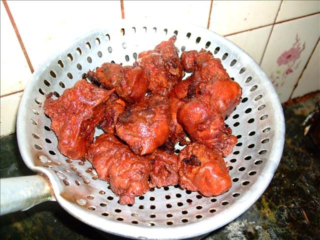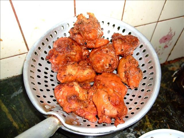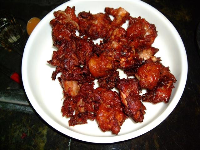 火呢,要中火,雞肉裹好醬後下鍋,然後要快速一直翻滾,不然這種醬汁很容易焦掉!等炸的差不多時,起鍋後,要開大火,再下鍋炸一次,這樣雞肉不會吸入很多油了~