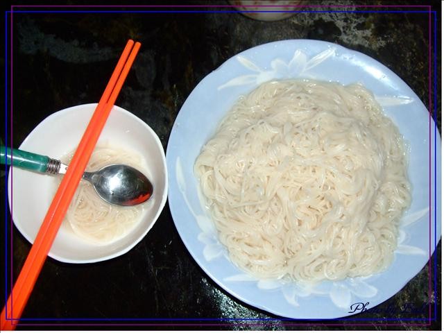 將煮好的麵線盛到盤子內,右邊那一盤是我「一個人」要吃的,左邊那一碗是小森森要吃的...