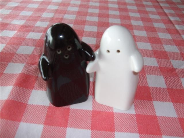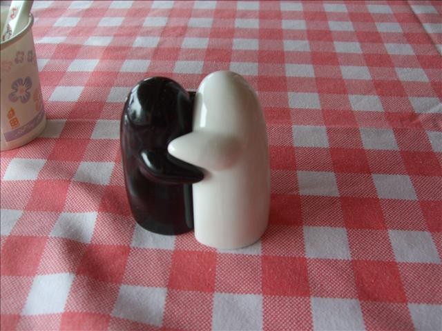 黑色的是胡椒粉,白色的是鹽←應該是台鹽精鹽,一包十幾元的那種...