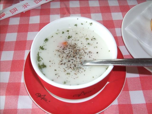 其實我本來是不知道這是啥湯的,喝完之後問了一下服務生才知道這是「巧達起司」濃湯!