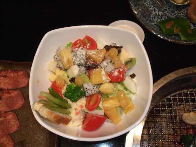 當時的沙拉上面撲滿了水果,下面撲了一堆生菜,旁邊還有好吃的薯泥、蘆筍跟麵包...