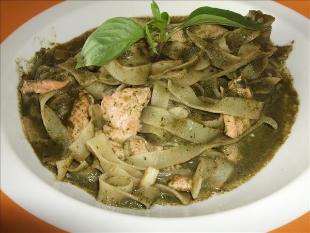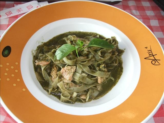 我點的是「青醬鮭魚義大利寬麵」套餐,要價250~