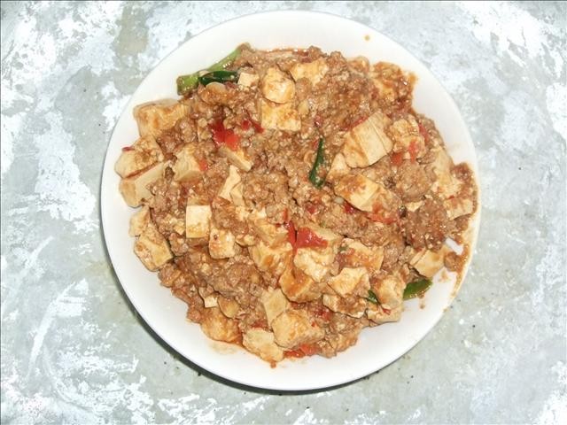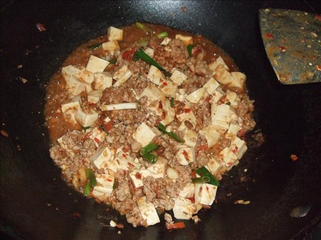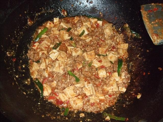 我很少在家裡做這道菜,不過我住外面的時候很常炒!以前炒的話沒用豆瓣醬也沒買絞肉,只用一罐辣肉醬加上一盒豆腐還有幾根蔥就可以有麻婆豆腐的口感了,哈哈!