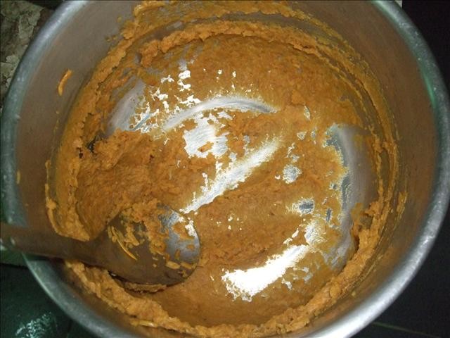 一、將壓成泥之後的地瓜,趁熱加入糖(請依個人口感,所以不用寫幾克,我都沒秤過我到底加了幾克的糖…),加入糖及少許的油後趁熱攪拌一下。