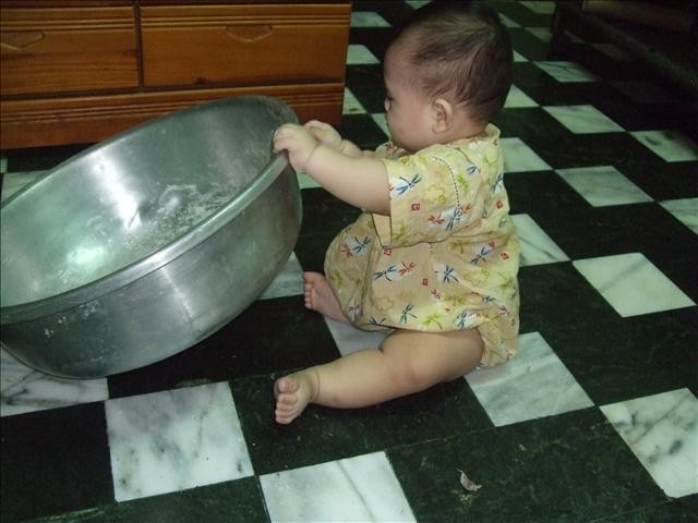四、搓著搓著,小森森拖著放地瓜團的盆子跑掉了….