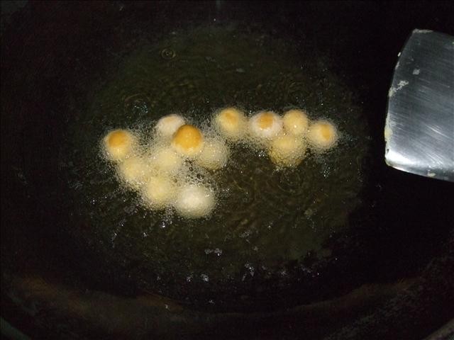 七、丸子下鍋後會有這種小油泡,但是要持續小火,避免焦掉!