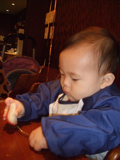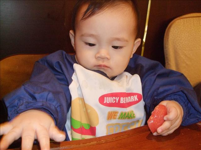 尤其是上菜後,小森森也不是就有得吃…還是得看菜色啊,小森森已經餓到在咬圍兜兜衣服了!