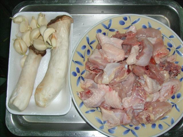 蒜頭少許(可不加),杏鮑菇兩大根,山雞肉半隻切塊!