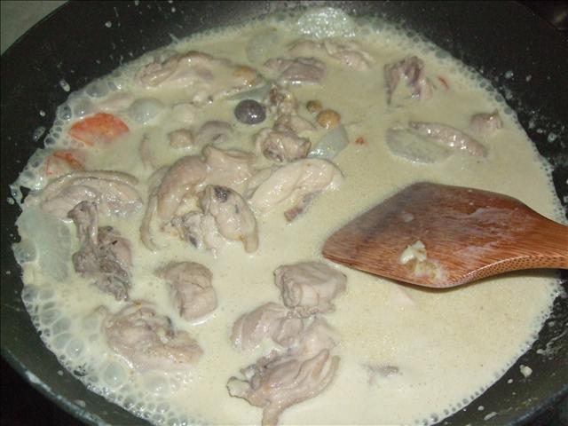 炒了一下後,倒入咖哩粉跟牛奶、椰漿!