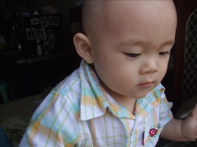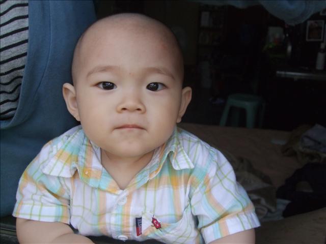 因為小森森從出生到現在都沒剃過光頭,有些頭髮的胎毛一直都沒掉,所以有些頭髮看起來就像很稀疏,稀疏到像小禿頭一樣...