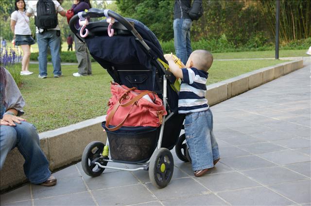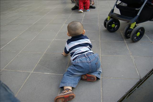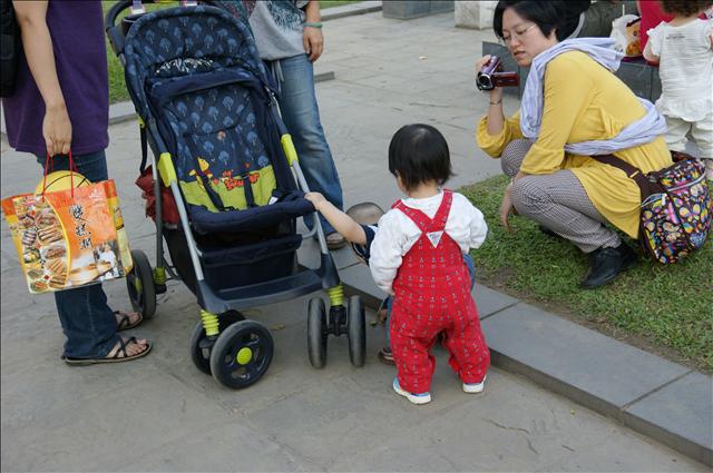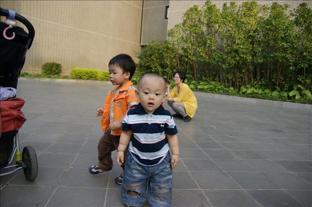 森森在撿啥東西?來寶緊跟著森森屁股後...