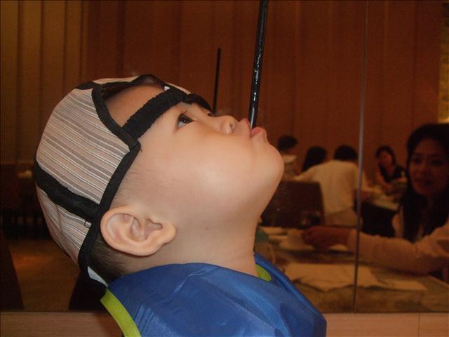 看著森森拿著吸管咬著玩時,又一直提醒說吸管的尖端會刺傷森森~