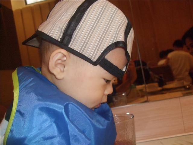 坐在我們前面的一桌四個大人,三不五時轉頭過來看森森的吃相,一邊評論說很可愛,也一邊說吃的滿嘴都是!其實我想他們可能不好意思講怎麼吃的滿身都是吧….