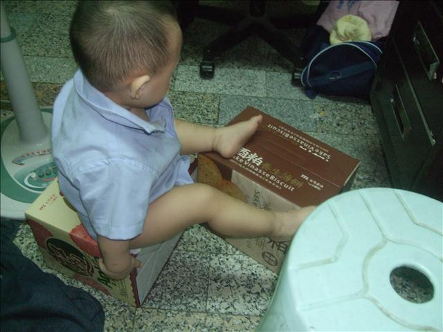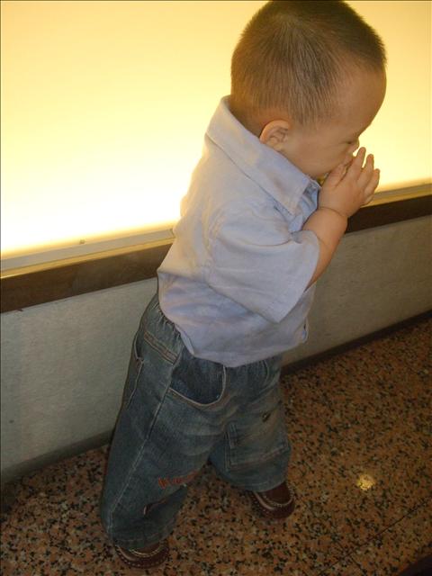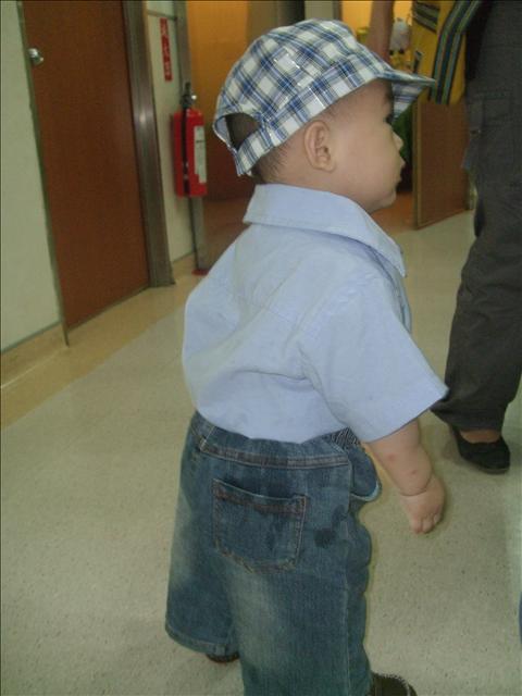 警戒心超重,我跟我同學在那邊示範把手掌貼在紙上面畫給他看,畫完輪到拉他的手畫時,這傢伙一副不給人家碰的小氣樣,搞了老半天,這小鬼死都不給人家碰他的左手!因為耗太久了,醫護人員只好用強的了....