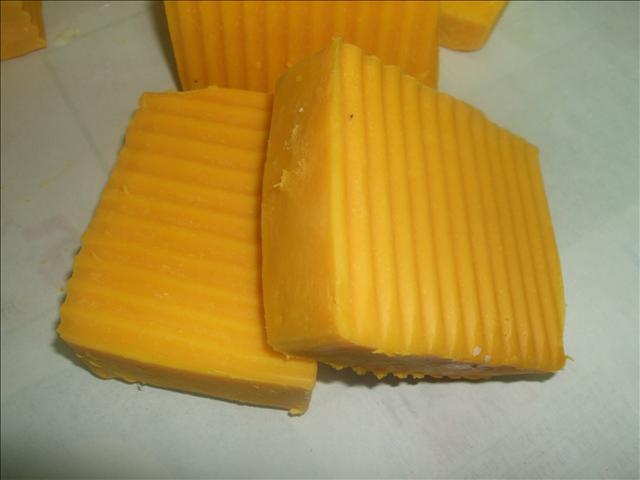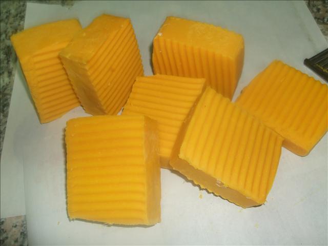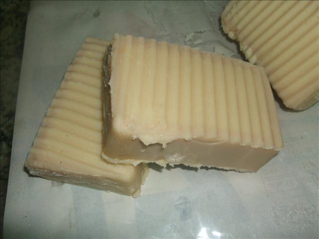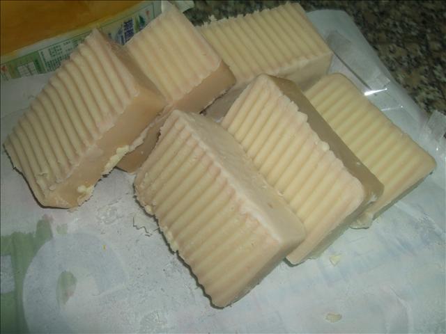沒想到,放了一個禮拜後脫膜,嘿嘿,切皂的時候,很漂亮的嘛!