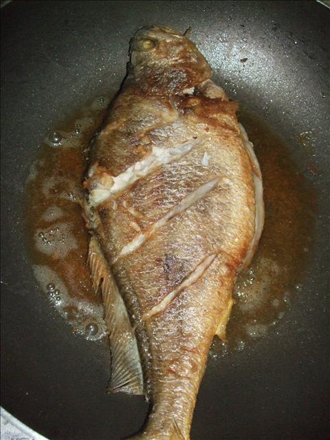 下面這隻黃魚不要以為我倒很多油!我並沒有倒油,那些油都是黃魚本身在煎的時候自己冒出來的!超肥嫩的!這隻魚大到不容易翻身,我可是拿著兩支鍋鏟撐著又拿了一隻夾子幫忙才給他翻過去煎的!真的很大一隻!當然啦,起鍋後的黃魚很美味,剩下的魚油炒後面的菜,整個香噴噴的又好吃,完全沒有魚腥味!