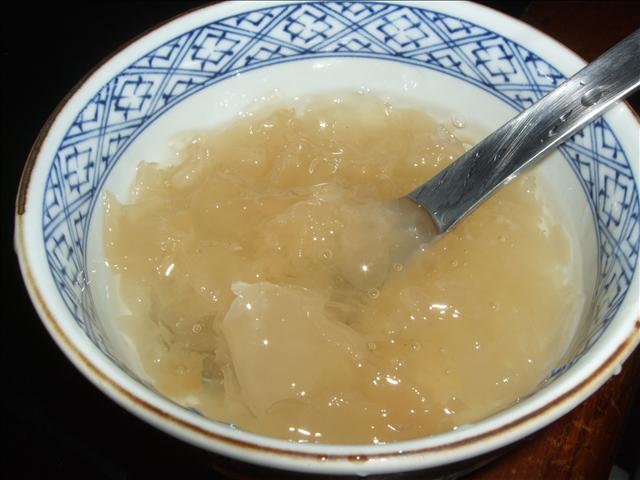 這個甜點,適合吃冰的!充滿膠質的白木耳很好吃~森森也很愛吃!而且還搶我的吃…..