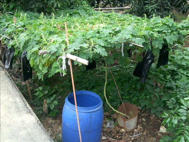 爺爺家的苦瓜藤!洧媽看到時還懷疑那是苦瓜藤咧!馬上掀開一條苦瓜給她看!哈哈~