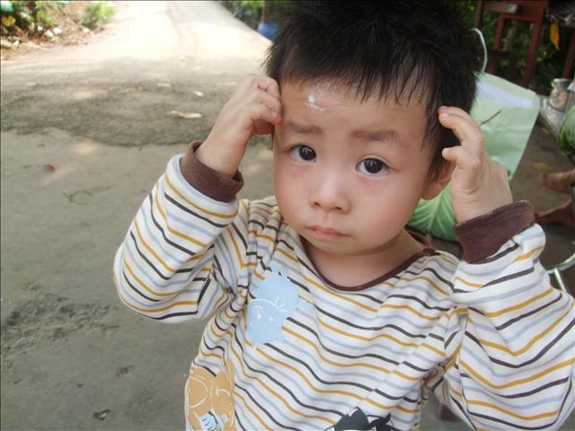 四處跑來跑去,到處玩土的洧洧也被蚊子叮的滿頭包!