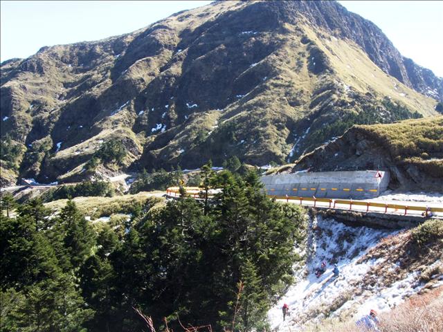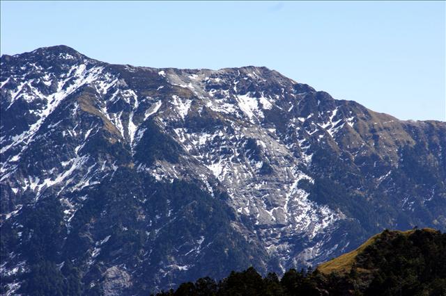從松雪樓後方看奇萊山,還是有不少積雪!聽說台灣下雪都是從奇萊山開始下的呢!