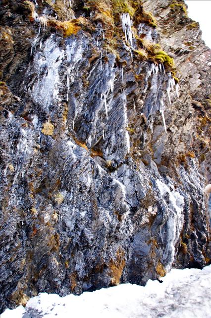 路邊山壁的融雪形成了冰柱!很漂亮吧,南部真的沒啥機會看這種景色的啦!