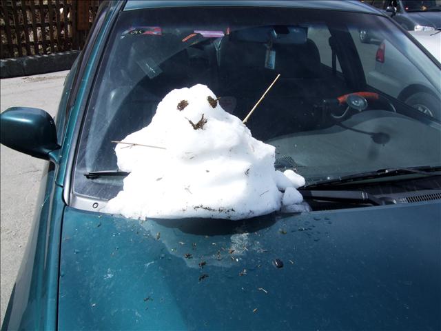 在到武嶺的半路中,竟然看到山上下來的休旅車前面擋風玻璃放了一隻「雪人」,哇~~~太興奮了!我還沒看過雪耶!