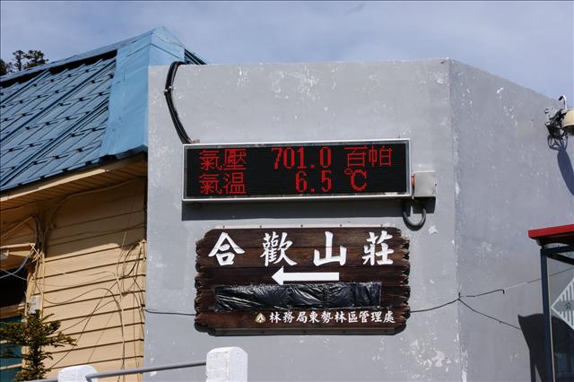 在合歡山莊這裡的跑馬燈顯示,當時溫度是6.5℃。拍這張照片的時間是12點左右!由此可見,入夜的松雪樓氣溫降到零下10度以下都有可能!在維持濕冷的空氣,深夜的松雪樓會下雪也不奇怪!