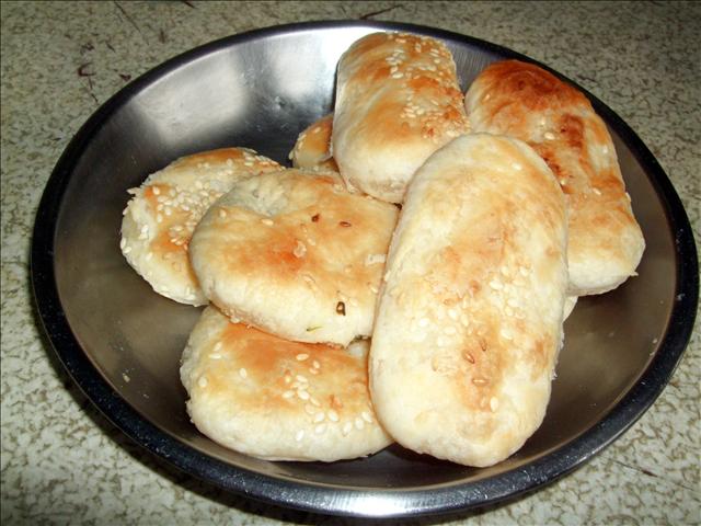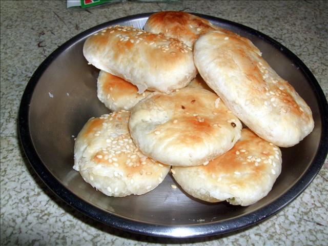 跟一般比巴掌還大的傳統油酥燒餅不一樣的是,這裡的燒餅是小顆的燒餅!以小孩子來說,可以吃掉兩個的大小。圓的是鹹燒餅,裡面有包蔥花餡的,橢圓的就是甜燒餅,各只有一種口味而已!一個單價7元,根據洧媽的說法,這種小燒餅,她從小女孩三塊吃到現在老女孩變成七塊了....歲月真的不饒人啊!