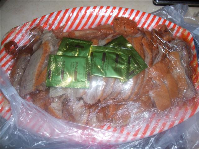 在曾讚買了三個五十的滷鵝腱跟三個五十的滷鵝肝!