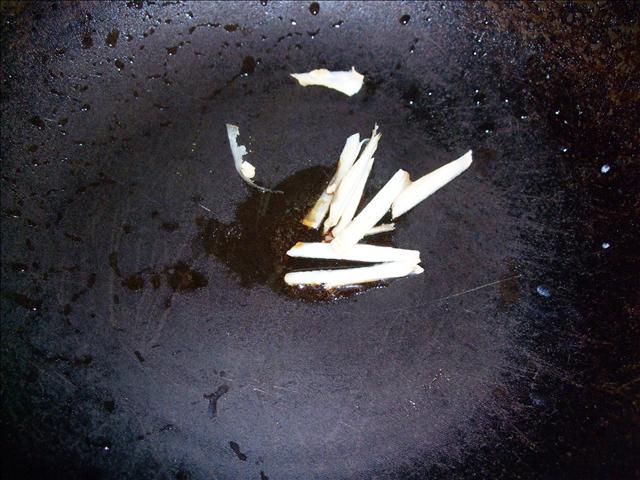 作法:麻油小火熱鍋爆薑,麻油不可以用大火,避免會苦焦,所以爆薑絲的時候,一定要小火!
