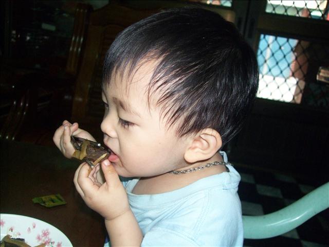 蒸出爐的時候,真的好香喔!森森忍不住伸去拿了一塊,結果被燙到~哈哈!
