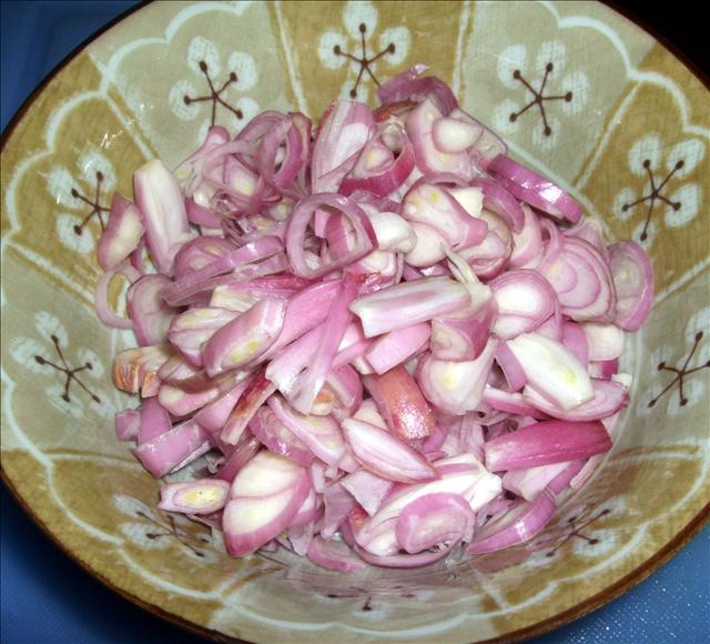 一、紅蔥頭切碎,這個動作很容易掉眼淚,請記得切一下就去休息一下….