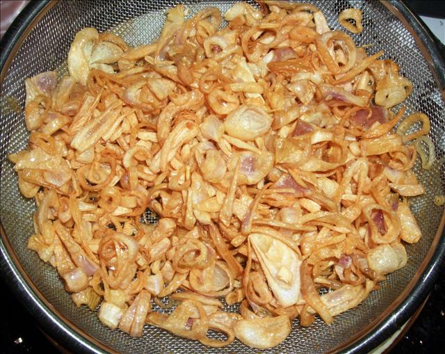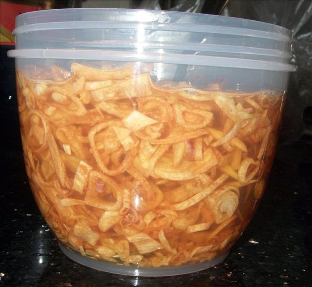 三、等到紅蔥頭開始變金黃色之後,就可以轉大火撈起,就會是很漂亮的金黃酥脆炸油蔥囉!