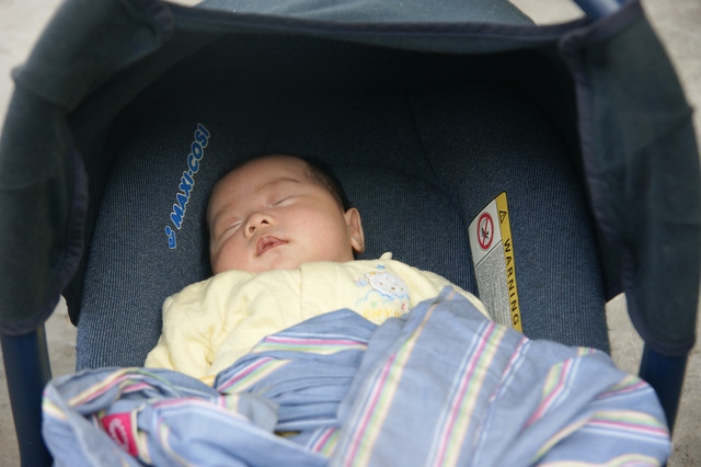 在推車上睡覺...