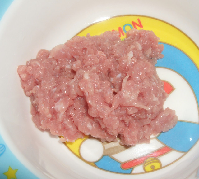 其實肉泥跟肉躁丁可能看不出來有啥差異,實際上的差別是,肉躁丁是切成小小丁的肉,肉泥真的就是肉泥,有差喔!(好吧,我承認我解釋的很爛…)