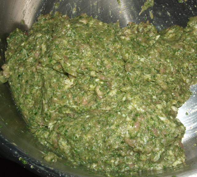 作法:以上材料通通打成肉泥、菜泥,加入雞粉、胡椒粉、鹽調味後,就可以包囉。