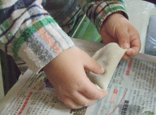 步驟七:就會變成這樣一顆勉強還可以看的水餃。(下面這顆真的是森森包的)