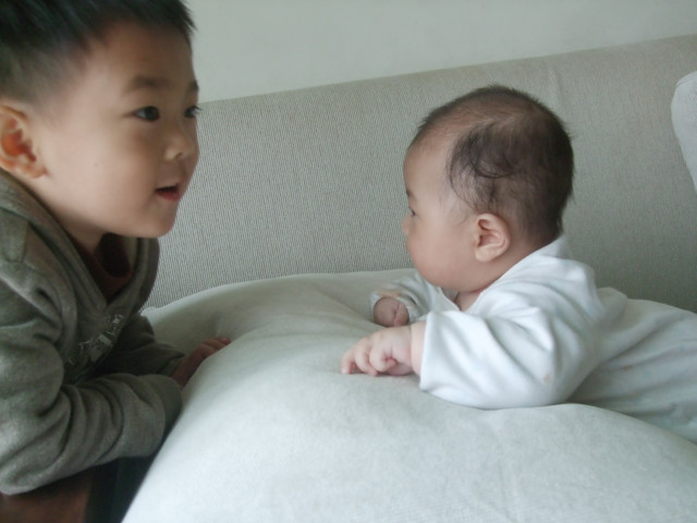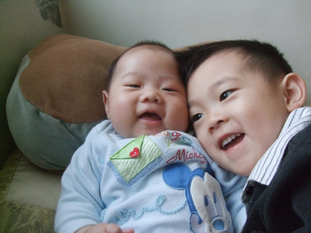 森二越來越大,森一很開心。因為可以跟弟弟玩的事情越來越多,而且越來越好玩!森二很好逗,也很會講話(嬰語),常常看到兩兄弟對話(講了啥我都聽不懂),而且森一很會把森二逗的亂七八糟笑,也很愛跟弟弟拍照(一直指使媽媽拍照)。