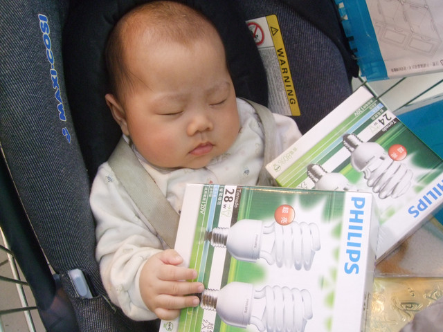森二小朋友算是蠻隨遇而安的,出去外面,連在購物車裡面也可以睡成這樣...(身上被一堆燈泡壓著也照睡不誤)....