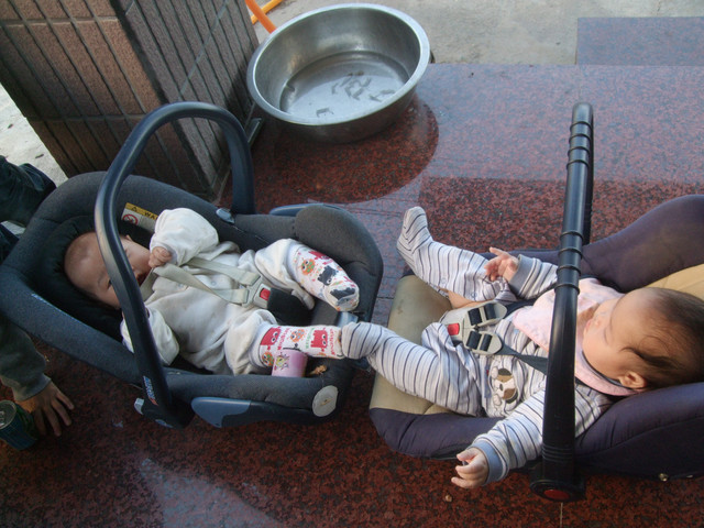 吃完早餐後,冰箱沒菜的時候,就拎著兩個小人去菜市場壓馬路。通常森二會在逛菜市場中的路上一路睡到家.....