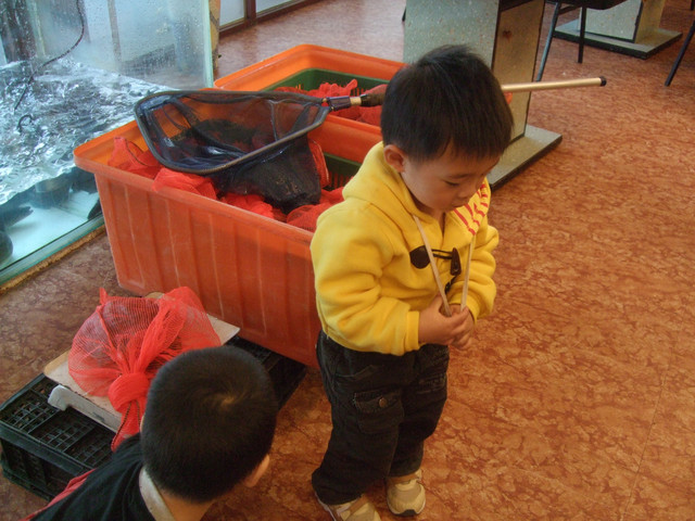 帶森森去看鱸鰻跟甲魚,幾個小朋友玩得很開心,自己拿甲魚起來秤....
