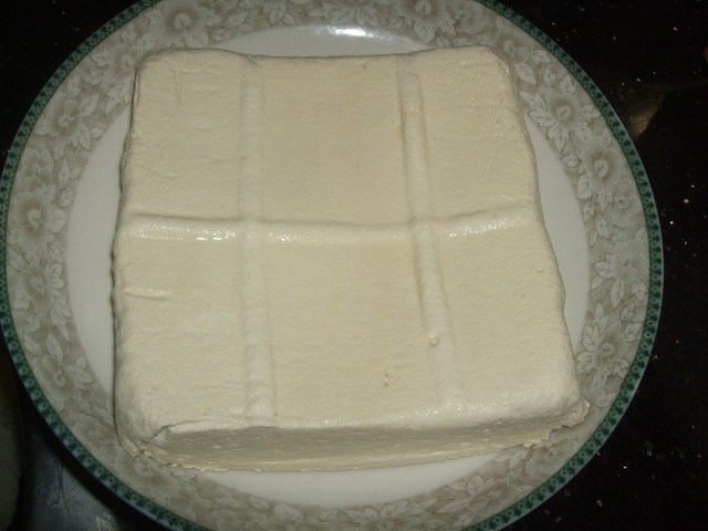 最後,給大家看一下,手工製的豆腐。真的是很好吃,下面這樣一片,大概是用五公升的豆漿做出來的豆腐,剛壓出來的豆腐趁熱吃,沾著好吃的丸莊醬油,我跟森森兩個可以一次吃光光.....XD,手工豆腐真的是很好粗~~~~