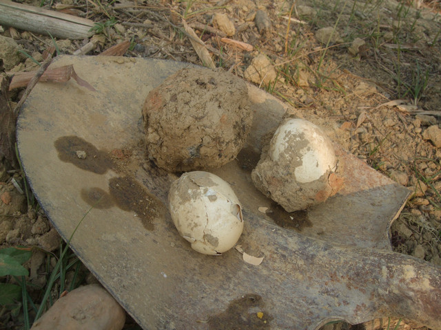 然後地上也默默的出現了20顆包好的雞蛋土丸子...