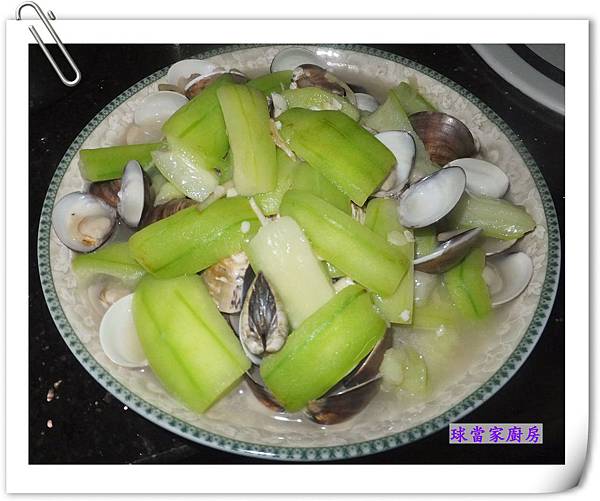 喔,其實這道菜一點難度都沒有,隨便普通的主婦都煮的出來,而且隨便煮都很好吃!因為蛤蠣本身煮熟了開殼後的湯汁浸入絲瓜內,就會讓絲瓜變得很美味囉!