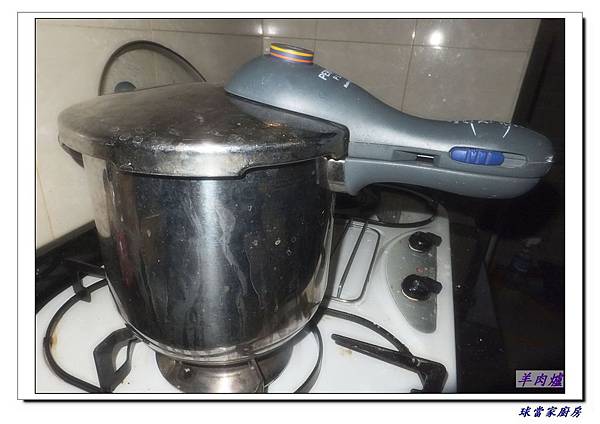 等到水滾之後,這時候就可以把鍋蓋蓋起來囉。這是快鍋還沒上壓快上壓的樣子。