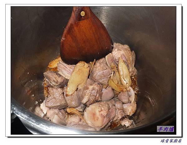 再倒入剛燙過的羊肉拌炒,羊肉拌炒要盡量翻炒到羊肉都均勻的炒到麻油,表皮要吃到麻油,這樣肉才會很香唷!