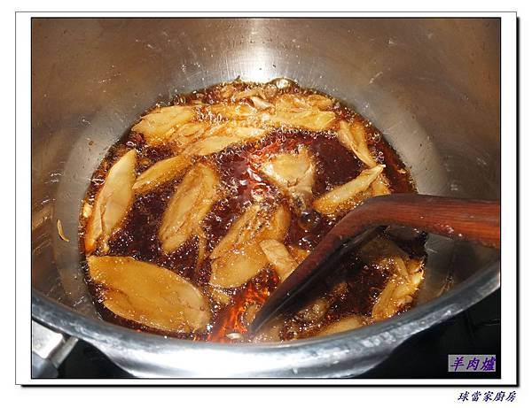 這張看得出來,薑片已經有點乾了嗎?麻油煸薑要把薑煸到收乾、有點焦的狀態,這樣薑的味道才會完整的釋放出來唷!